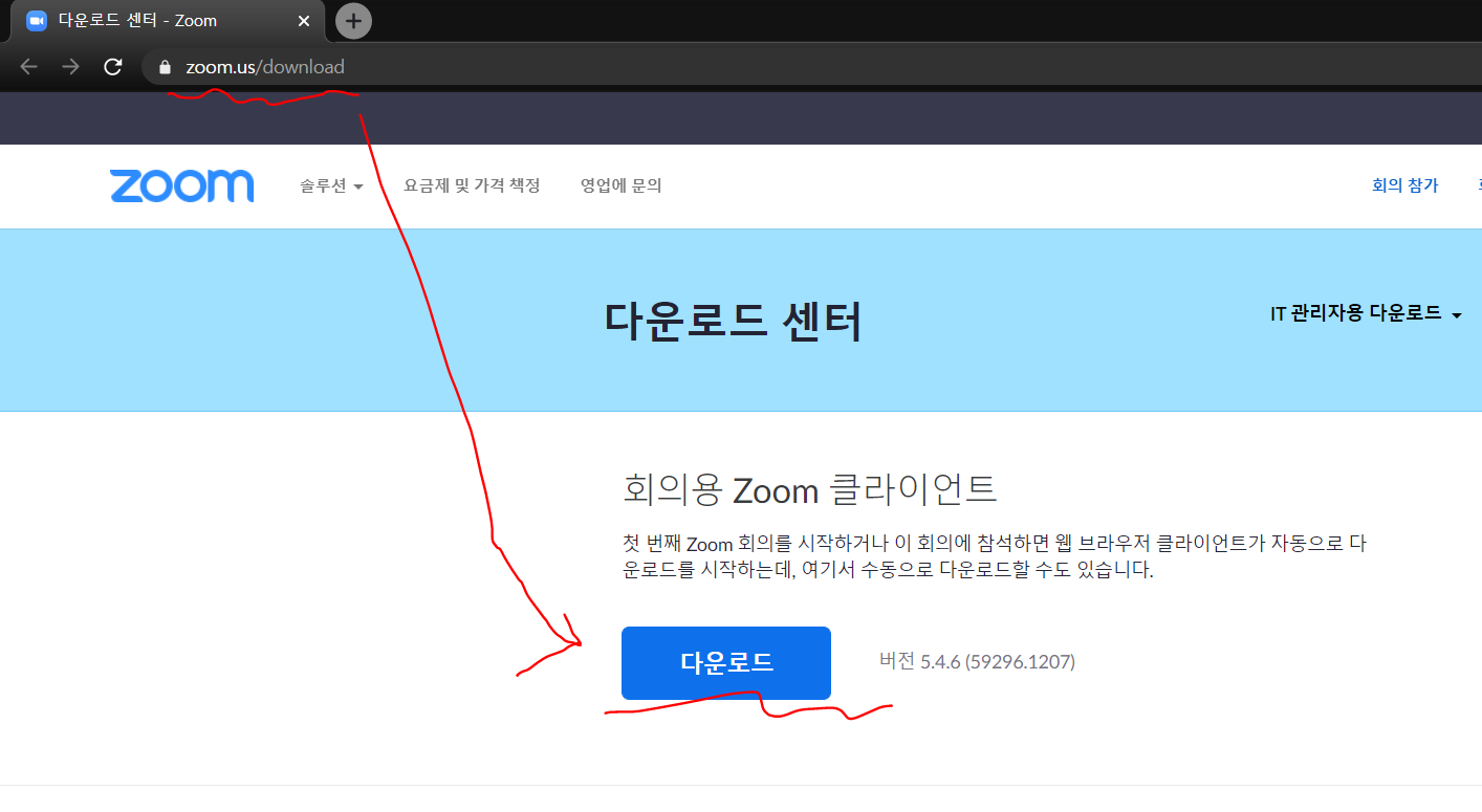 아래 그림들(총 3개)처럼 웹브라우저에서 zoom.us/download 이동하신 후, 다운로드를 하신 후, 탐색기에서 클릭하시면 됩니다.
