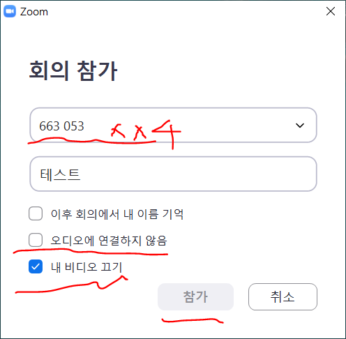 회의 참가 번호 맨 마지막 자리는 4자리입니다.
